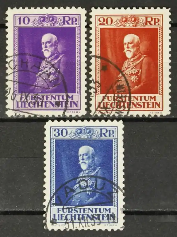 Liechtenstein 1933, Michel 122-124, 80ste Verjaardag van Vorst Franz I, complete serie, gestempeld / used
