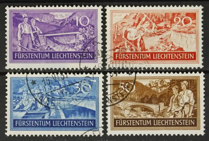 Liechtenstein 1937, Michel 152-155, Werkgelegenheid, complete serie, gestempeld / used