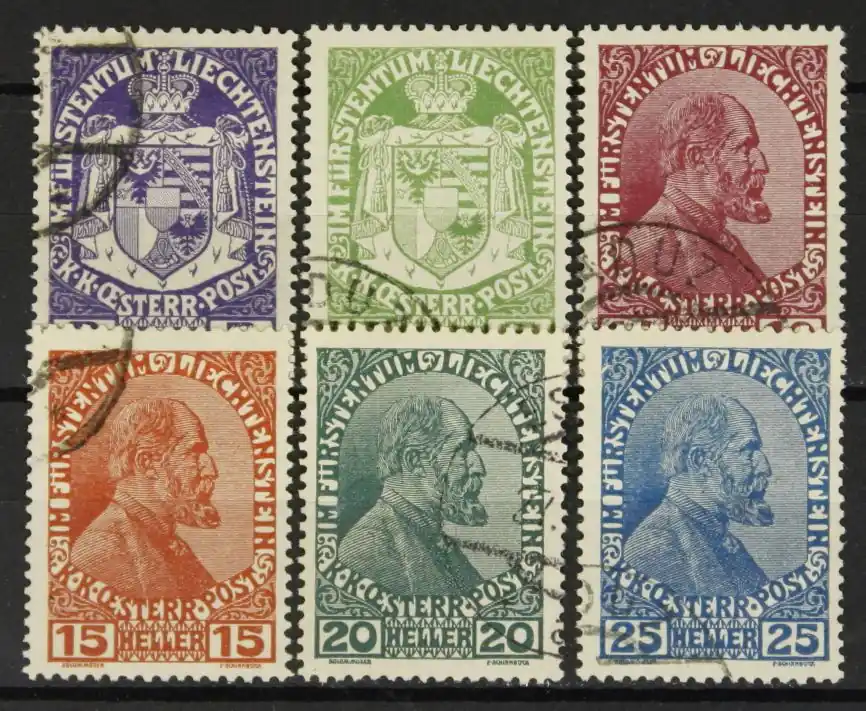 Liechtenstein 1917, Michel 4-9, 60e verjaardag inhuldiging Johann II, complete serie, gestempeld / used