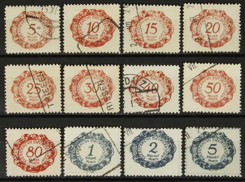 Liechtenstein 1920, Portzegels Michel P 1-12, cijfers in ovaal, complete serie, gestempeld / used