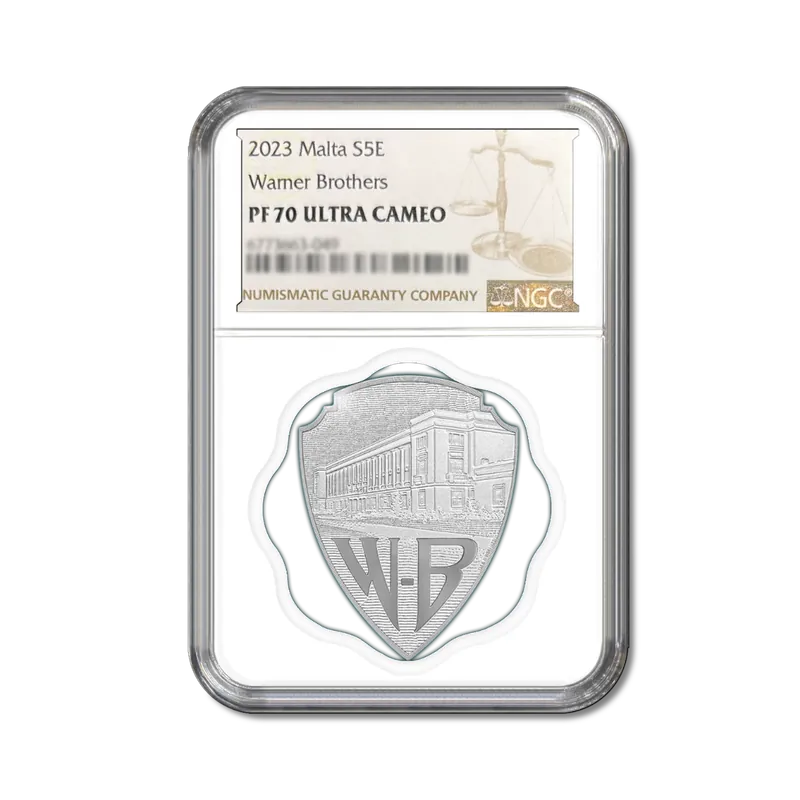 Een zilveren munt van de allerhoogste kwaliteit in uw bezit? Een aantal Malta Zilver Proof munten zijn nu verkrijgbaar als PF70 geclassificeerd in speciale capsule. De Malta 5 Euro 2023 ‘Warner Bros. 100 jaar’ is door de onafhankelijke partij NGC (Numismatic Guaranty Company) beoordeeld. 24 stuks hebben de hoogst mogelijke classificatie gekregen: PF70. PF70 betekent dat de munt geen enkele imperfecties heeft na productie, ook niet bij een 5x vergroting. Ultra Cameo betekent dat de munt aan beide zijden een krachtig contrast heeft. Dankzij deze beoordeling heeft u gegarandeerd een perfect geslagen zilveren Proof munt in huis. Scan de QR-code op de capsule voor het officiële NGC certificaat met alle belangrijke informatie. Meer over de totale oplage en meer specificaties van de Malta 5 Euro 2023 ‘Warner Bros. 100 jaar’ vindt u hier.Malta 5 Euro ‘Warner Bros. 100 jaar’ 2023Warner Bros. wordt opgericht door Albert, Sam, Harry en Jack Warner op 4 april 1923. Vandaag de dag is de studio een verzameling van de meest succesvolle merken ter wereld en heeft inmiddels wereldberoemde films op zijn naam staan. De studio staat vooraan als het gaat om ontwikkelingen in de filmindustrie. Warner Bros. staat aan de basis van de meest diverse verhalen en wereldberoemde franchises, waaronder Looney Tunes, Wizarding World, DC, Friends en meer.OntwerpDe Malta 5 euro 2023 ‘Warner Bros 100 jaar’ komt in de vorm van een Warner Bros. logo: een van de eerste logo’s die werd gebruikt! Dit bekende Warner Bros. schild heeft een duidelijke zwarte omtrek. Aan de bovenkant van het schild is een afbeelding van het voormalig Warner Bros. gebouw te zien. Aan de onderkant zijn de letters W-B™ zichtbaar: Warner Bros. De keerzijde van het schild bevat het logo van de Centrale Bank van Malta. Deze herdenkingsmunt heeft een nominale waarde van 5 euro.