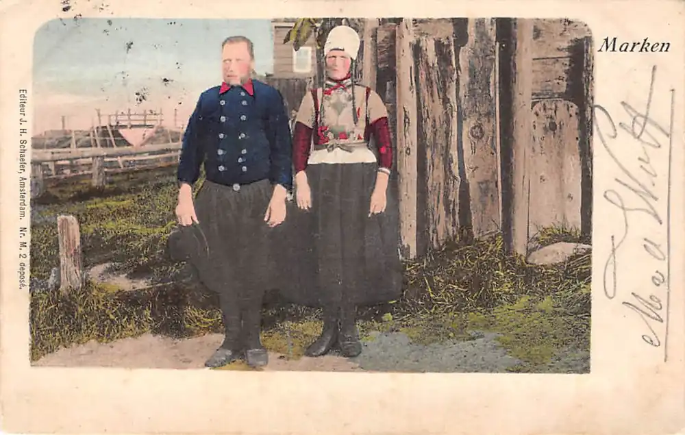 Marken Vissers echtpaar 1902 Klederdracht Kleinrondstempel Waddingsveen 23 JUL 02 HC61037 Wysoka jakość