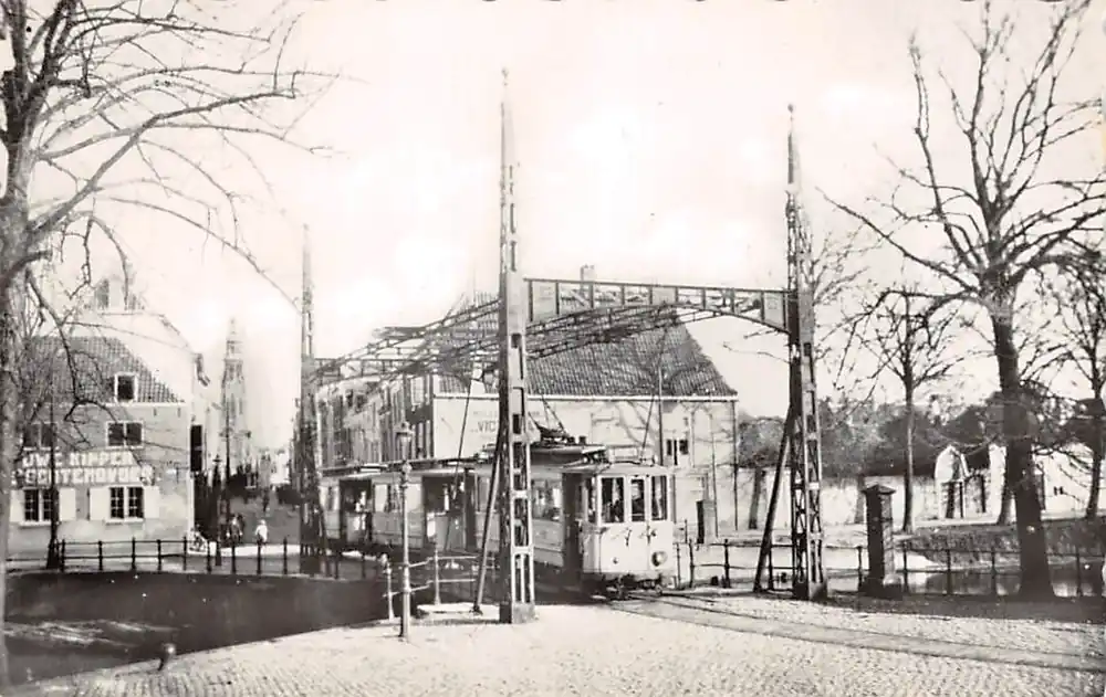 Middelburg Electrische tram op de Langevide binnenbrug voor 1904 HC48842 Oryginalny