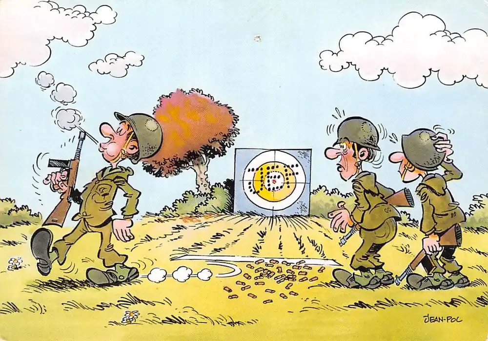 Najlepsza cena Militair Humor Soldaat schiet zijn naam in de schietschijf Illustrator Jean-Pol Cartoon HC51026
