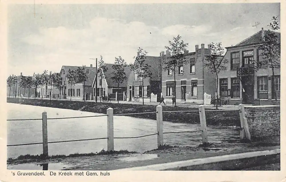 Uitg. A. de Vries, Boekhandel, ‘s-Gravendeel. Ongelopen ansichtkaart. Heel lichte plaksporen in het midden.