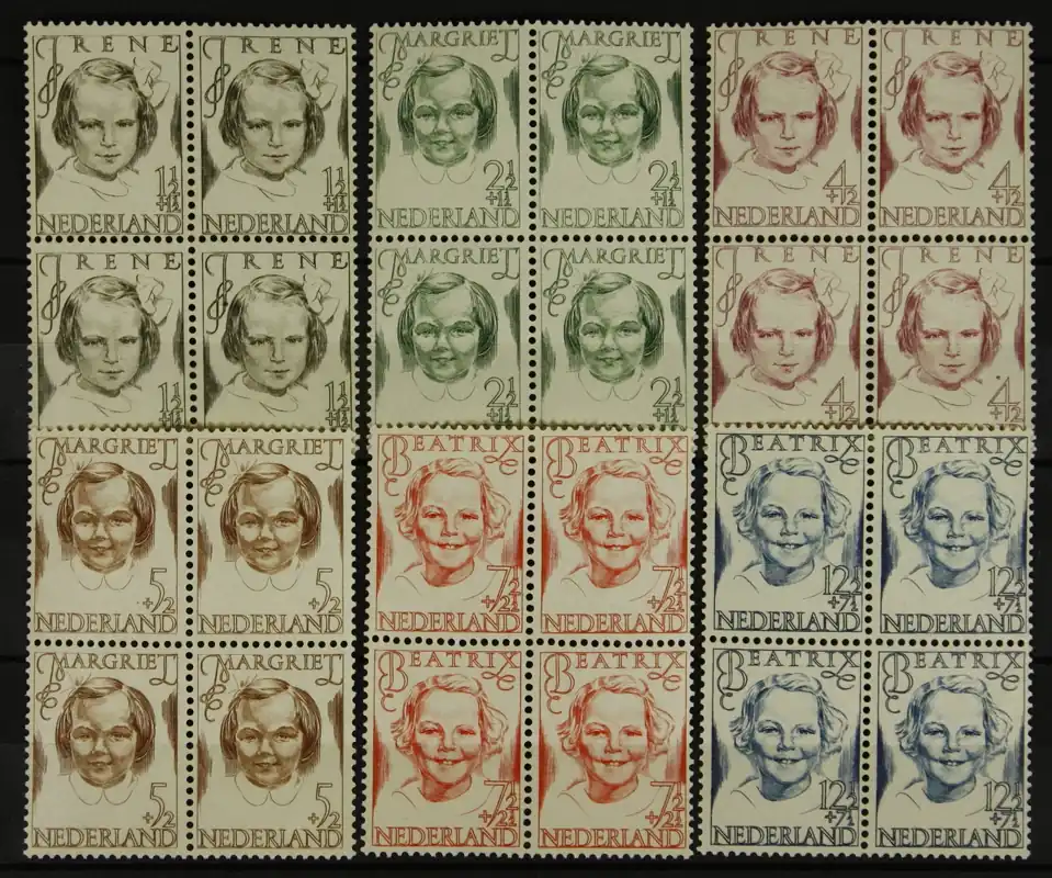 Nederland 1946, NVPH 454-459, Prinsessenzegels, complete postfrisse serie in blokken van 4
