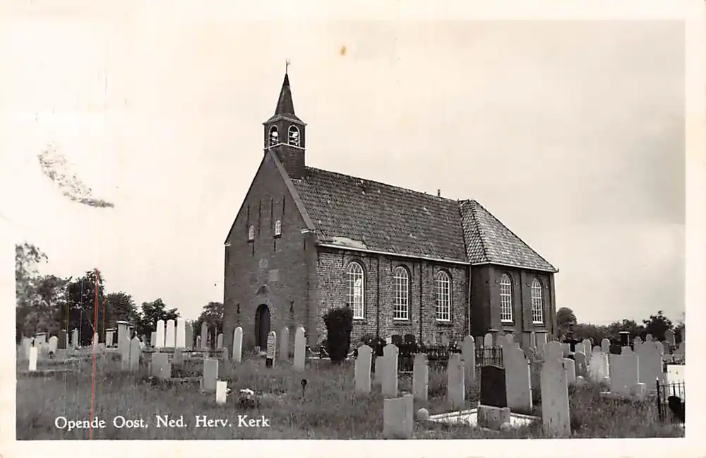 Uitgave G. Drost Opende. 756. Enekle bruine vlekjes achter. Met postzegel en stempel Opende 1957.