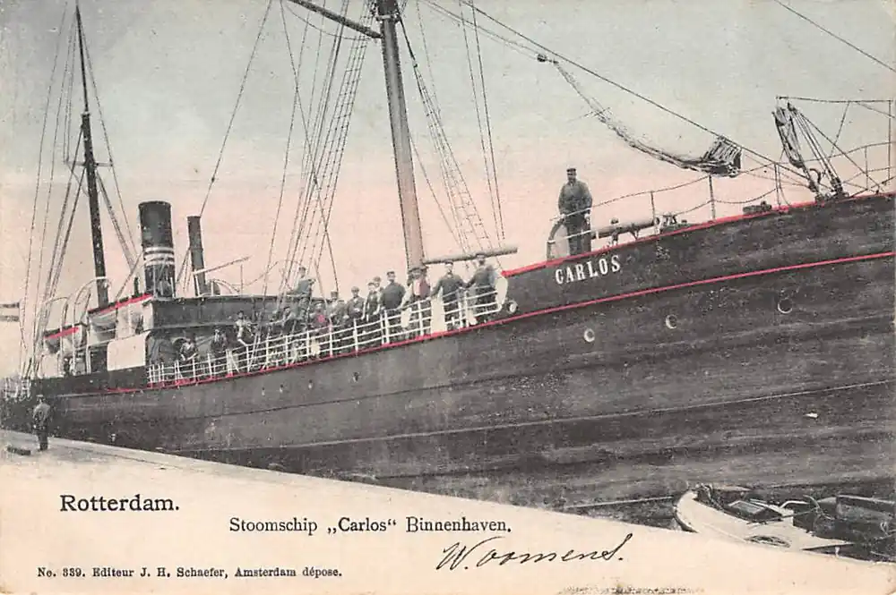Oryginalny Rotterdam Stoomschip Carlos Binnenhaven 1903 Binnenvaart schepen HC1091