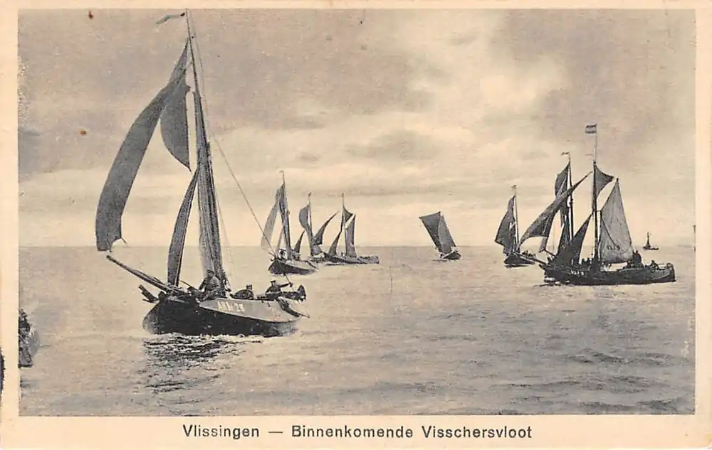 UItgave Foto Dert, Vlissingen. Arnemuiden. Scheepvaart. Visserij. Gelopen ansichtkaart met postzegel en stempel 1929. Linksonder vlekjes.
