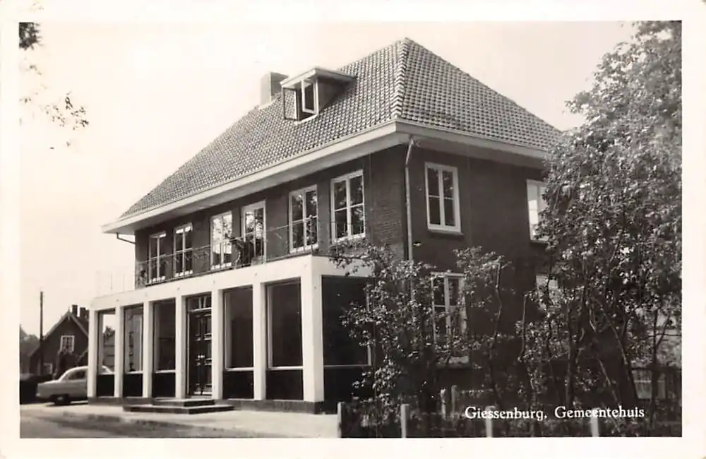 Uitg. Mej. M. v. Houwelingen, Giessenburg. 1055. Gelopen ansichtkaart met postzegel en stempel.