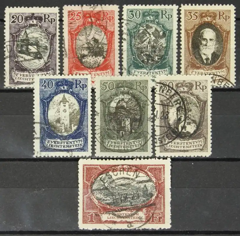 Liechtenstein 1921, Michel 53-60, Landschappen, Gebouwen en Johann II, complete serie, gestempeld / used