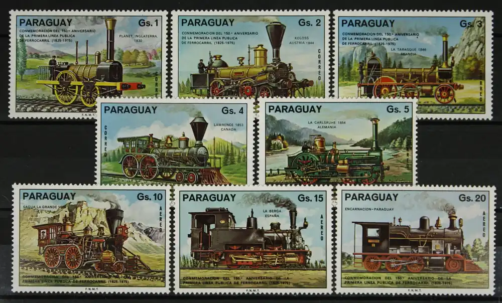 Paraguay 1976, Michel 2774-2781, 150 Jaar spoorlijn Stockton-Darlington, complete postfrisse serie / MNH