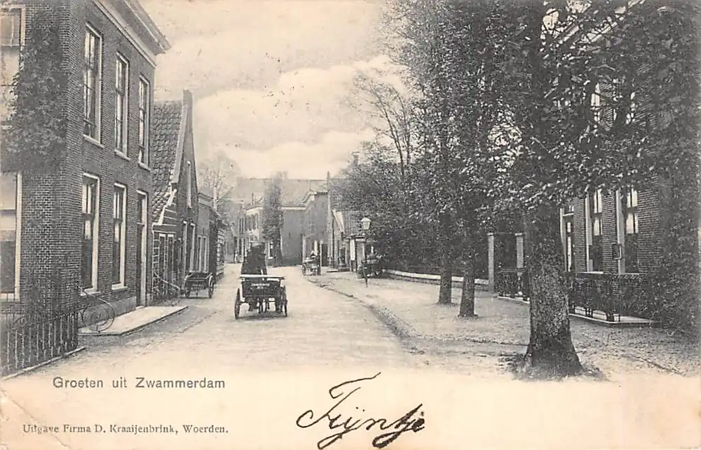 Uitgave Firma D. Kraaijenbrink. Knikje linkeronderhoekje. Met postzegel en stempels 1904.