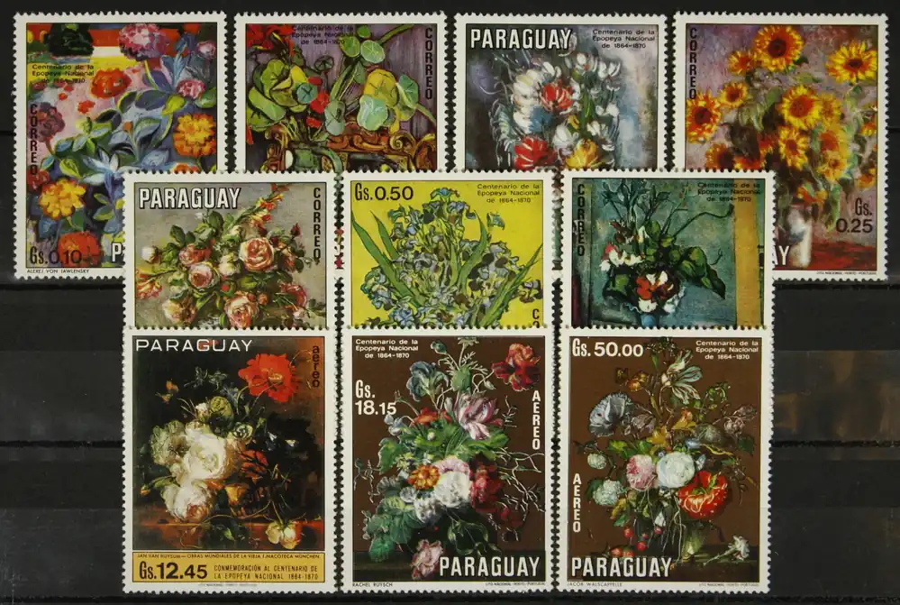 Paraguay 1970, Michel 2092-2101, Bloemenschilderijen, complete postfrisse serie / MNH