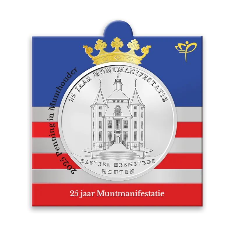 Het ontwerp staat helemaal in het teken van 25 jaar Muntmanifestatie. Op de voorzijde van de beurspenning staat Kasteel Heemstede in Houten: een echte eyecatcher uit de gemeente waar de Muntmanifestatie sinds 2013 plaatsvindt. Op de keerzijde staat een kaart van Nederland met daaromheen de jaartallen en plaatsen waar de Muntmanifestatie heeft plaatsgevonden: Haren (2001 – 2003), Assen (2004-2012) en Houten (2013 – 2025). In de kaart staan ook de wapenschilden van deze steden. Deze wapenschilden zijn groter zichtbaar op de munthouder: rechts bovenin Houten, rechts onderin Assen en links onderin Haren.De Muntmanifestatie in Houten is een internationale verzamelbeurs waarbij de hal (3300 m2) wordt gevuld door standhouders met munten, penningen en papiergeld. De Koninklijke Nederlandse Munt is hier traditiegetrouw aanwezig, onder andere met een speciale beursuitgifte.