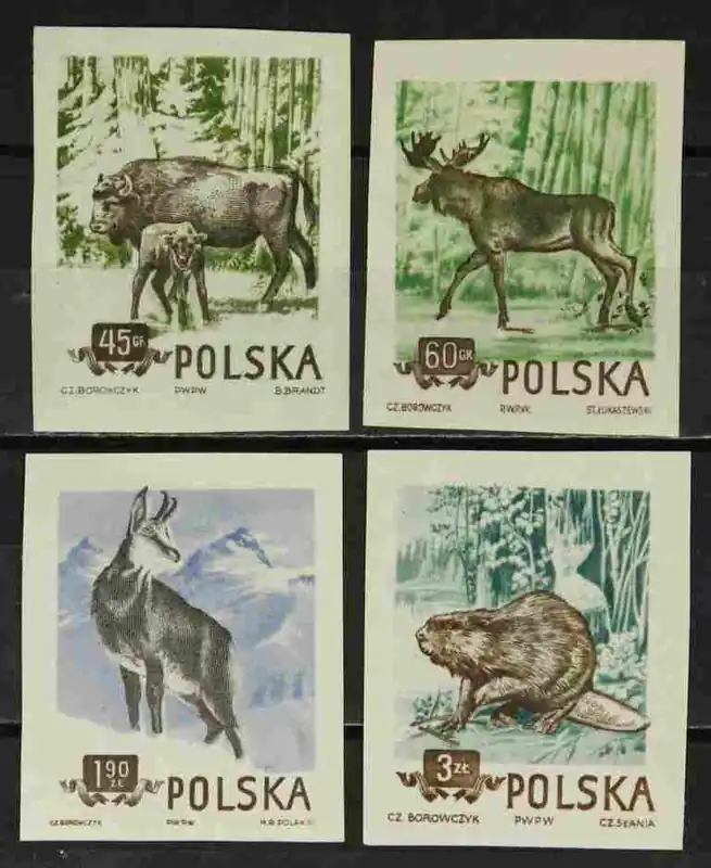 Polen 1954, Michel 885-888 B (ongetand), Beschermde bos- en bergdieren, complete serie, postfris / MNH