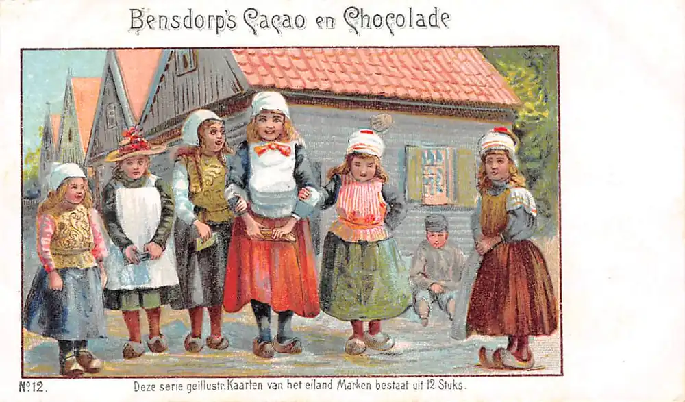 Popularny Amsterdam Reclame Bensdorp ’s Cacao en Chocolade Kaarten van het eiland Marken No. 12 Klederdracht Vintage HC55225