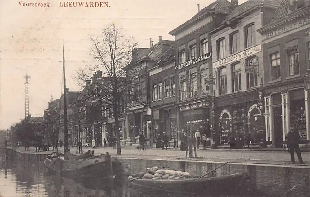 Popularny Leeuwarden Voorstreek met De Goedkoope Winkel van H. Wijbenga (de uitgever van deze kaart) HC57783