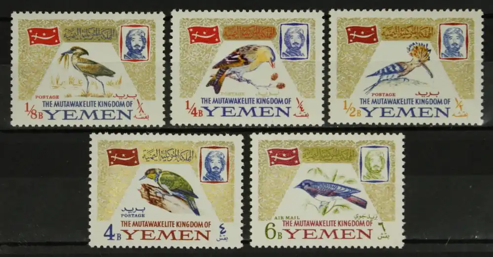 Noord-Jemen (Koninkrijk) 1965, Michel 148A-152A, Vogels, complete postfrisse serie / MNH