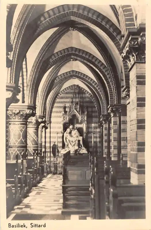 Foto Hub. Leufkens. Mooie gel0pen ansichtkaart met postzegel en stempel Sittard 1948.