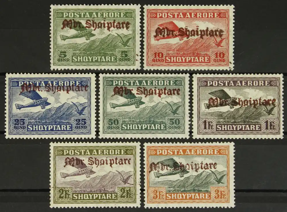 Albanië 1929, Michel 210-216, Opdrukserie, compleet ongebruikt / MHOplage maximaal 1003 complete series! Gekeurd.
