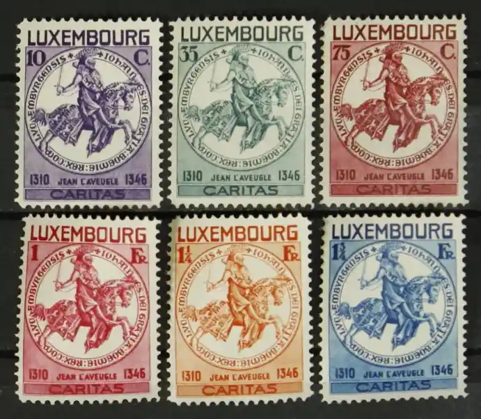 Luxemburg 1934, Michel 259-264, Kinderhulp, Zegel van graaf Johann des Blinden, complete serie, ongebruikt (plakkerspoor) / MH