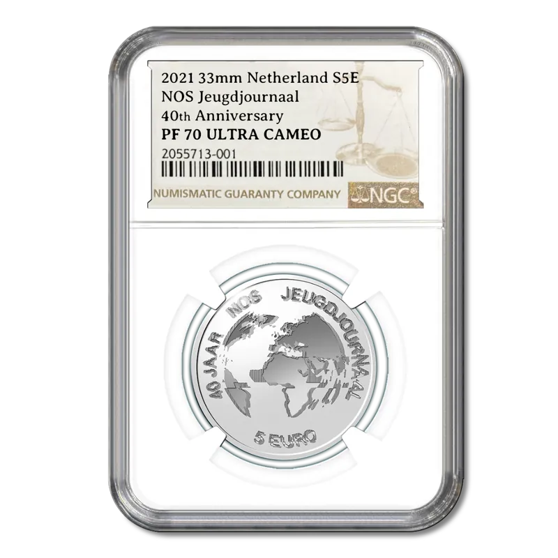 Een zilveren NOS Jeugdjournaal munt van aantoonbare perfectie in uw collectie? PF70 is de ultieme beoordeling – een perfecte munt zonder zichtbare foutjes, zelfs onder vergroting. Het is een waar meesterwerk, met foutloze afwerking en verfijnde details. Voeg dit pronkstuk toe aan uw topcollectie!Het NOS JeugdjournaalHet nieuwsprogramma voor kinderen was voor het eerst te zien op 5 januari 1981. Het werd alleen op doordeweekse dagen uitgezonden en duurde zeven minuten. In schoolvakanties was er geen NOS Jeugdjournaal. Inmiddels is het programma 365 dagen per jaar op televisie en is de zendtijd uitgebreid naar twintig minuten. Het is een van de langstlopende nieuwsprogramma’s voor kinderen ter wereld, net als het Britse programma Newsround op de BBC. Newsround had in de eerste jaren een positieve insteek waarbij vooral vrolijk nieuws werd gebracht. Het NOS Jeugdjournaal wilde juist taboes en zware onderwerpen niet schuwen, maar op een heldere en kindvriendelijke manier aankaarten. Voor het programma begon, was uit onderzoek gebleken dat kinderen behoefte hadden aan een serieus nieuwsprogramma. De doelgroep wordt dan ook actief bij het nieuws betrokken. Dagelijks kunnen kijkers op de site hun mening kwijt en reageren op een stelling. Tijdens het Jeugdjournaal verkiezingsdebat mogen schoolkinderen lijsttrekkers interviewen. Dit is uniek in de wereld Het programma won door de jaren heen diverse prijzen, zoals de Gouden Stuiver (de belangrijkste prijs voor kinderprogramma’s in Nederland) en een NPO Zapp Award.