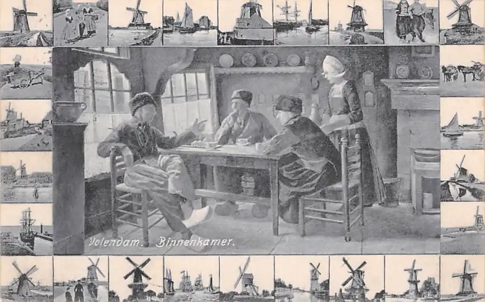Promocja Volendam Binnenkamer Vissers Klederdracht Molens in de randen Vintage 1906 HC50104