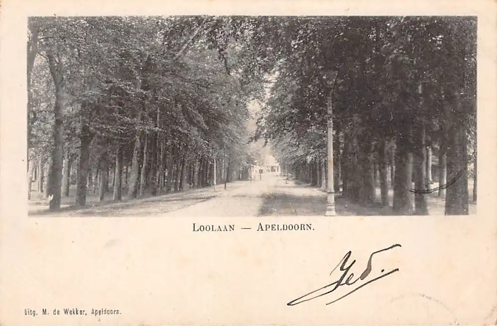 Uitg. M. de Wekker Apeldoorn. Mooie gelopen ansichtkaart met postzegel en stempels 1900.