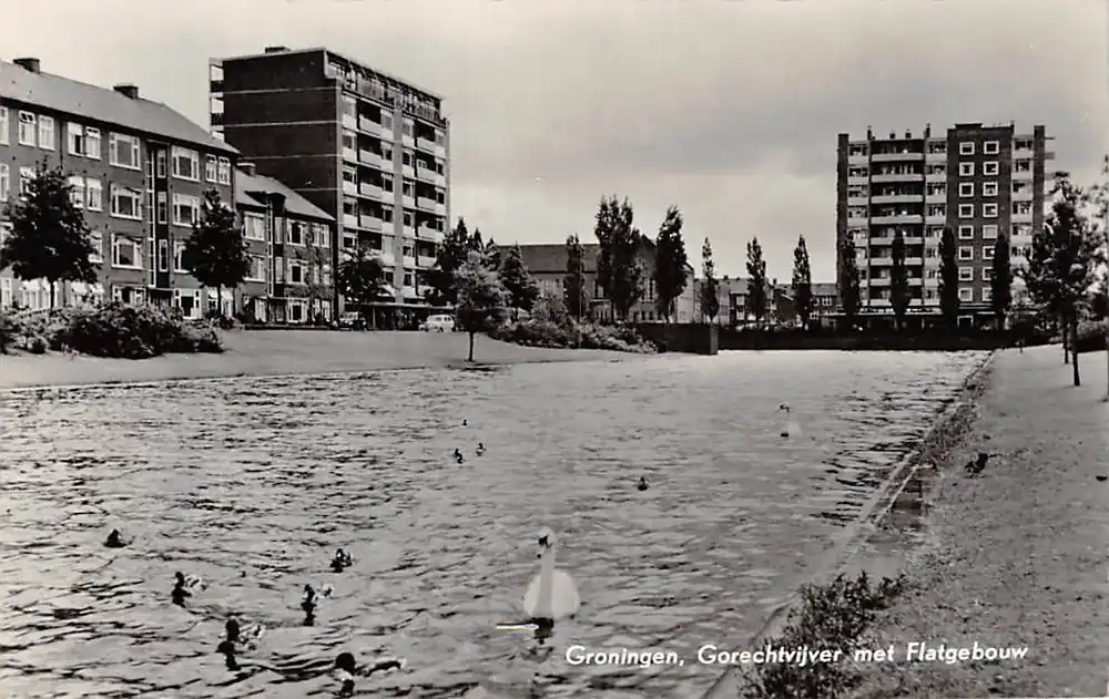 Rabat Groningen Gorechtvijver met Flatgebouw 1956 HC4715