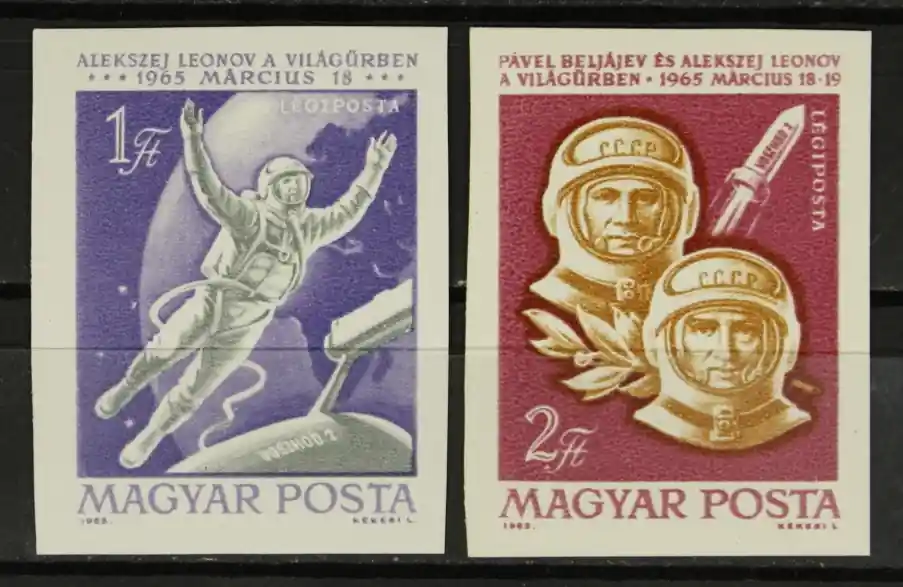 Hongarije 1965, Michel 2120-2121 B, Luchtpostzegels Ruimtevaartschip “Woschod 2”, complete ongetande set, postfris/MNH