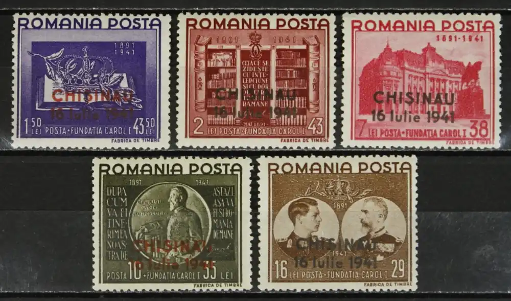 Roemenie 1941, Michel 691-695 II, Bezetting van Chisinau, complete postfrisse serie / MNHOplage slechts 37.500 series!