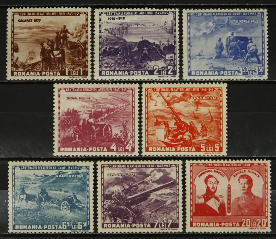 Roemenie 1943, Michel 782-789, 100 Jaar Roemeense Artillerie, complete postfrisse serie / MNH