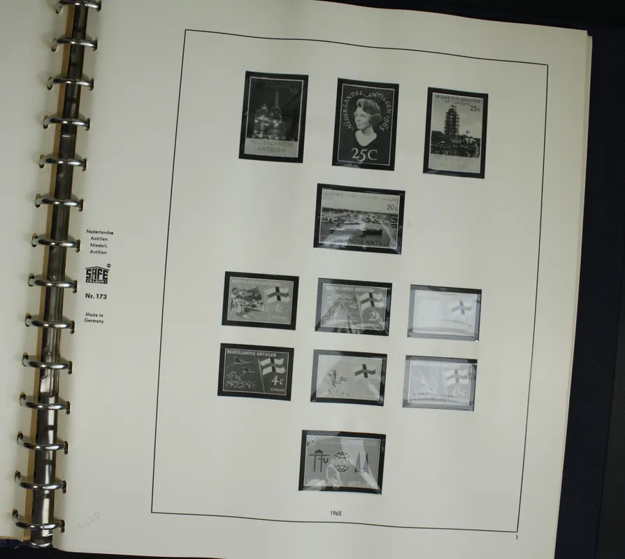Gebruikt Safe album Nederlandse Antillen (tijdvak 1965-1979)32 bladen (gedeeltelijk oude systeem) in donkerblauwe Safe ringband.