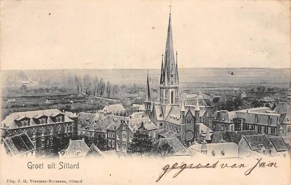 Uitg. J.H. Vroemen-Bormans, Sittard. Gelopen ansichtkaart met postzegel en stempels 1905. Miniem knikje bovenhoekje links.