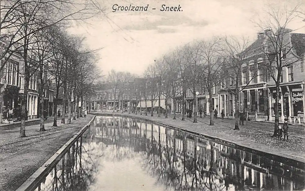 Uitgave J.A.D. Heerius Sneek. Gelopen ansichtkaart met postzegel en stempel Sneek 1918. Links van midden knik door de kaart.