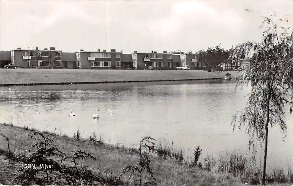 Uitg. Fa. v. Boxtel, Son. BELL. Noord-Brabant. 8620. 165. Ongelopen ansichtkaart van de vertegenwoordiger van de ansichtkaartenuitgeverij met zijn aantekeningen i.v.m. een heruitgave van deze kaart uit 1965 in 1967.