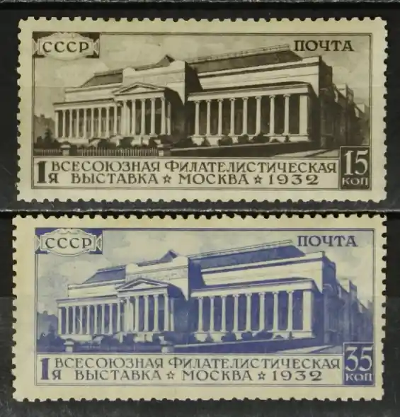 Sovjet-Unie 1932, Michel 422-423 Ax, Postzegeltentoonstelling Moskou, complete ongebruikte set, plakkerspoor / MHTanding 12½.