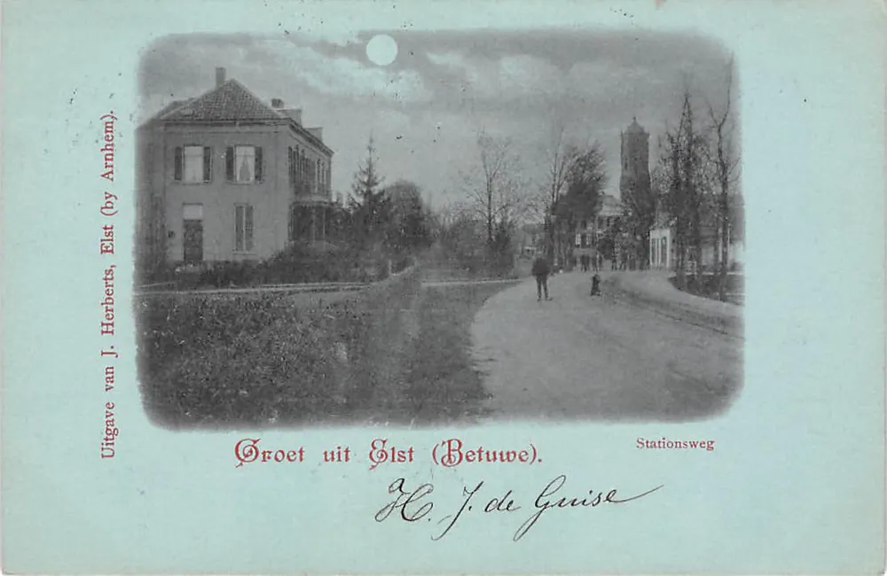 Uitgave van J. Herberts, Elst (by Arnhem). Mooie gelopen ansichtkaart met postzegel en stempels 1900.