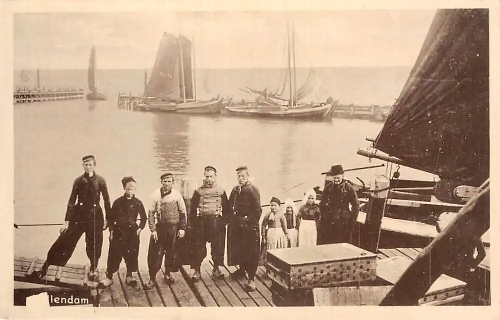 Tani Volendam Vissers en kinderen bij de haven Schepen Zuiderzee Klederdracht Vintage HC54600