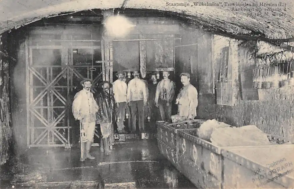 Terwinselen bij Heerlen Staatsmijn Wilhelmina Aankomst op schacht 1 op 165 M diepte 198 Mijn HC5294 Niska cena