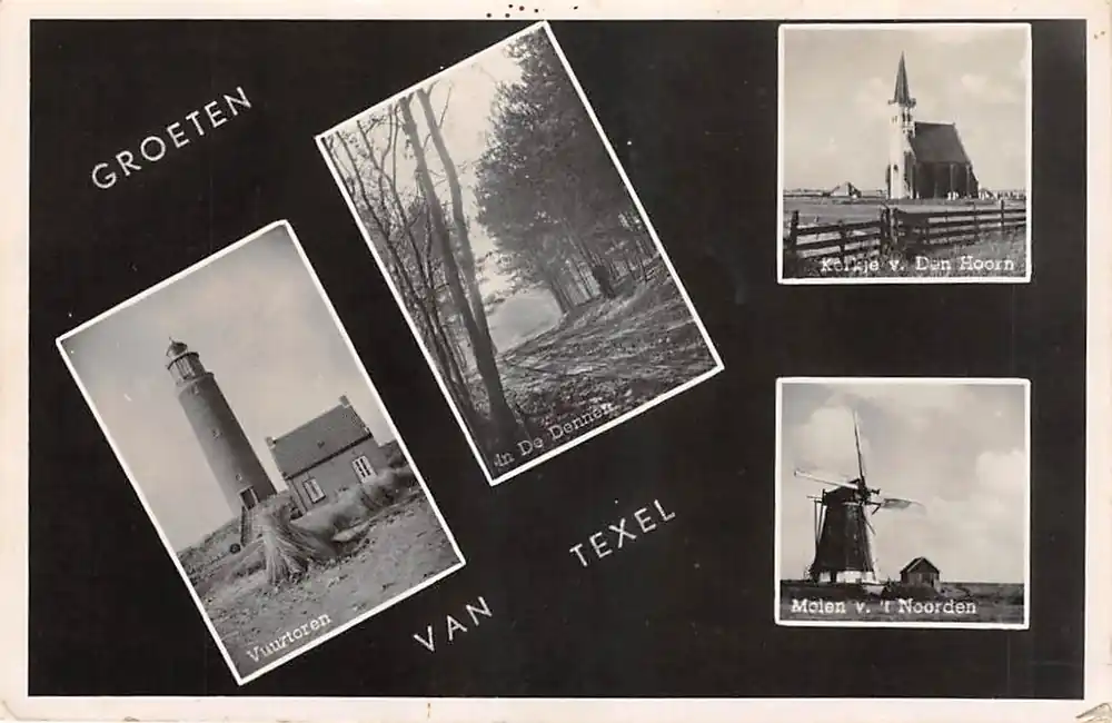 Texel Groeten 1951 Vuurtoren In De Dennen Kerkje v. Den Hoorn Molen van ’t Noorden HC56598 Bezpieczna płatność