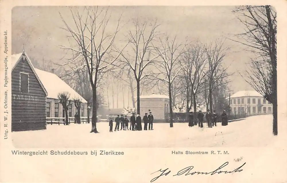 Uitg. R..W.J. Ochten, Papiermagazijn, Appelmarkt. Gelopen ansichtkaart bij postzegel en stempels 1902. Rotterdam.