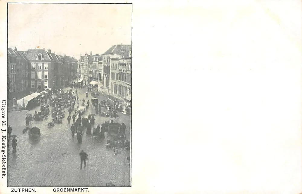 Uitgave M.J. Koning-Siebelink. Naast de afbeelding van Groenmarkt is een groot blanco gedeelte waarop kon worden geschreven. Formaat 9 x 13,9 cm.