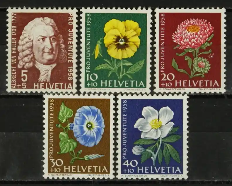 Zwitserland 1958, Michel 663-667, Pro Juventute: Bloemen (I), complete serie, postfris / MNH