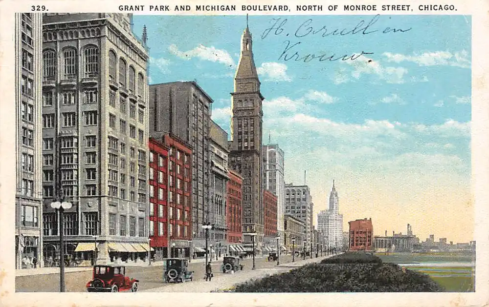 329 Max Rigot Selling Co. Chicago. 329. Gelopen ansichtkaart met stempel 1924; postzegel netjes verwijderd.