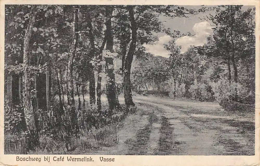 Uitgave Café Wermelink, Vasse. gelopen ansichtkaart met postzegel en vooroorlogs stempel.