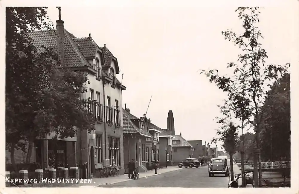 Uitgave A. Noteboom – Waddinxveen. Gelopen ansichtkaart met postzegel en stempel 1953. Linkeronderhoek twee knikken.