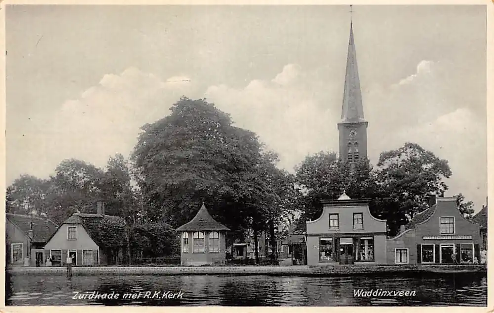 Waddinxveen Zuidkade met R.K. Kerk 1937 HC55096 Popularny