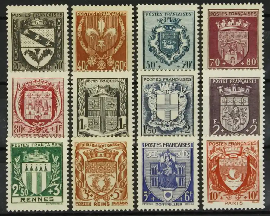 Frankrijk 1941, Yvert 526-537, Nationale hulp: Stadswapens, complete postfrisse serie